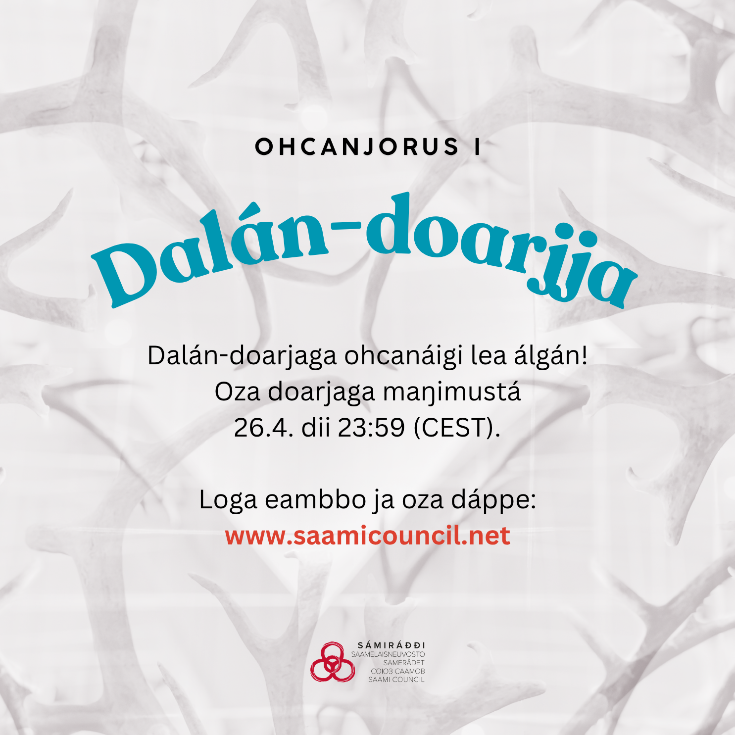Sámiráđđi lea rahpan Dalán-doarjaga vuosttaš ohcanjorrosa jahkái 2026 ja bovde sámi dáidda- ja kultursuorggi ohcat doarjagiid. Dalán-doarjaga sáhttá ohcat Sámiráđi neahttasiidduin elektrovnnalaš ohcanskoviin 26.4.2026 dii 23:59 (CEST) rádjái. Dalán-doarjaga njuolggadusaide sáhttá oahpásnuvvat Sámiráđi neahttasiidduin.